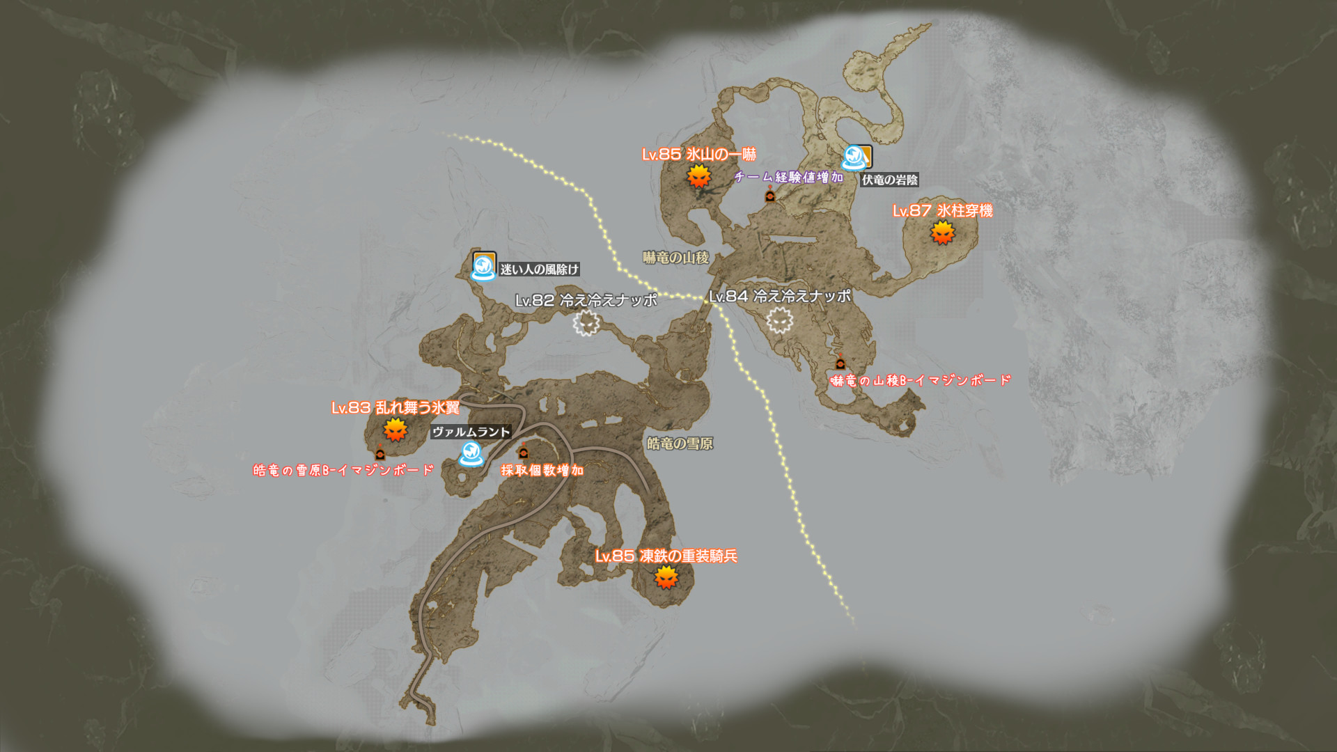 | 通常エネミーLv. | 皓竜の雪原 | 78~82 |