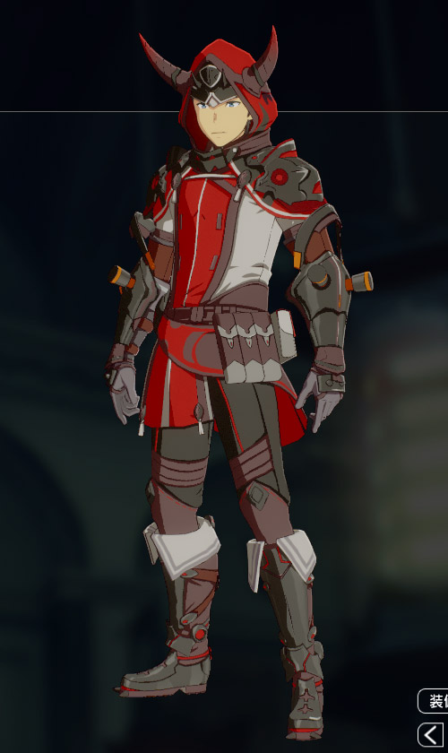 赤と焦茶色で彩られ、フードに着けられた角をはじめ荒々しいアレンジが施されている。