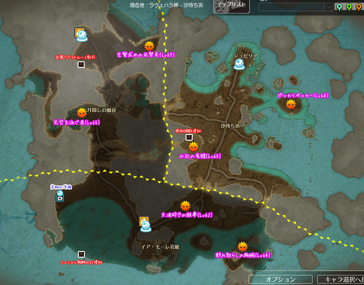 | 通常エネミーLv | 汐待ち浜 | 57~64 |
