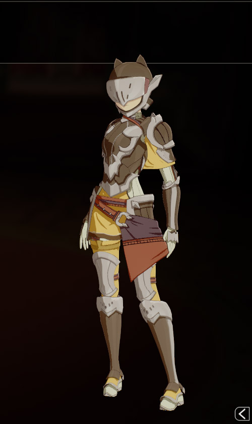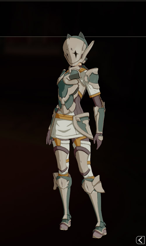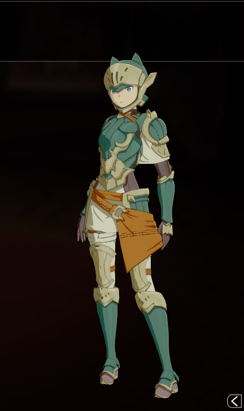 元傭兵がデザインしたという衣装。「重騎士」の女性版。(男性版はセントリーシリーズ)