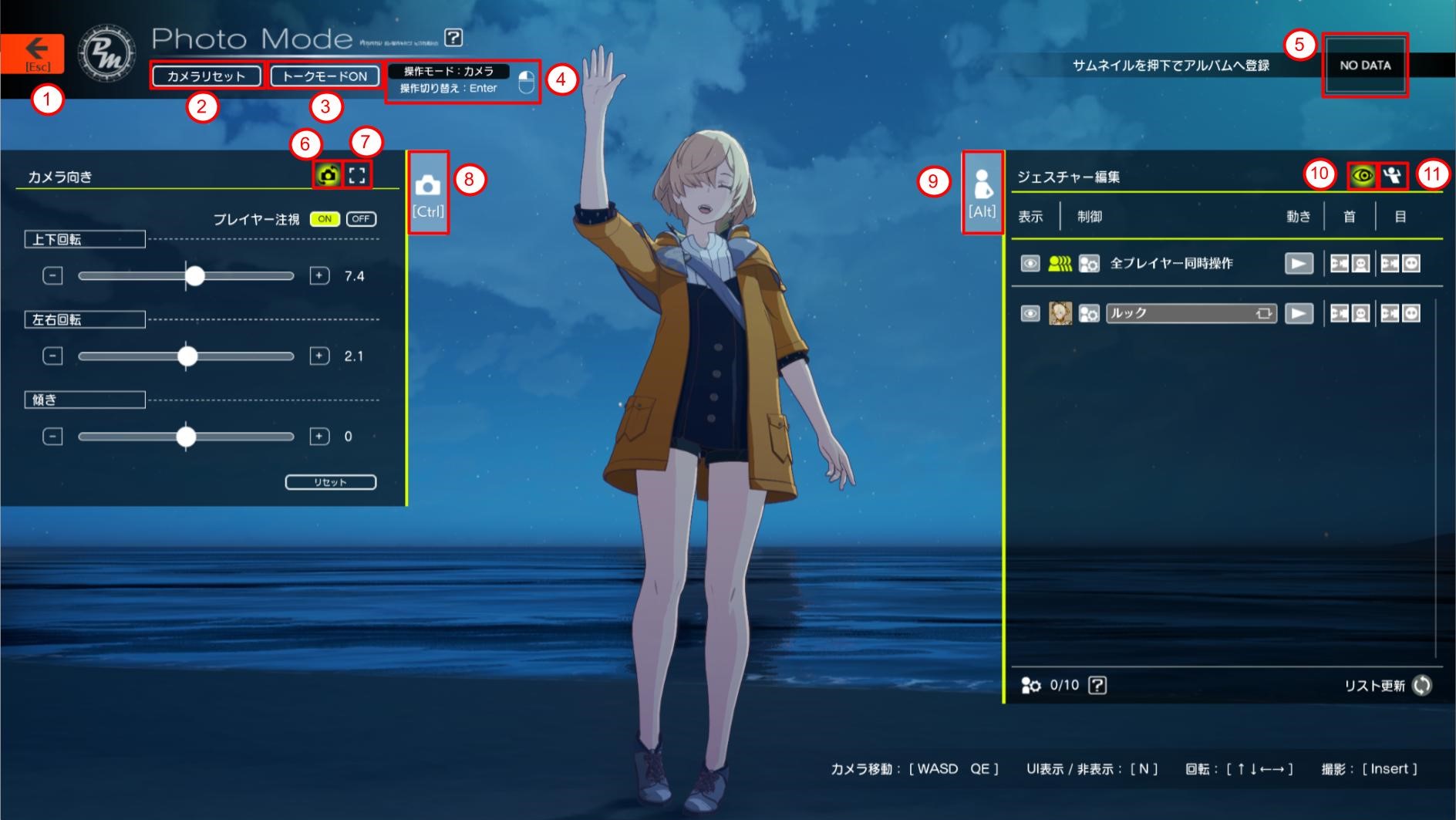 「フォトモード」では、フォトモードとは、ズームや画角調整、ぼかし機能など細かな設定を行いながら、自由なアングルでスクリーンショットが撮影できます。