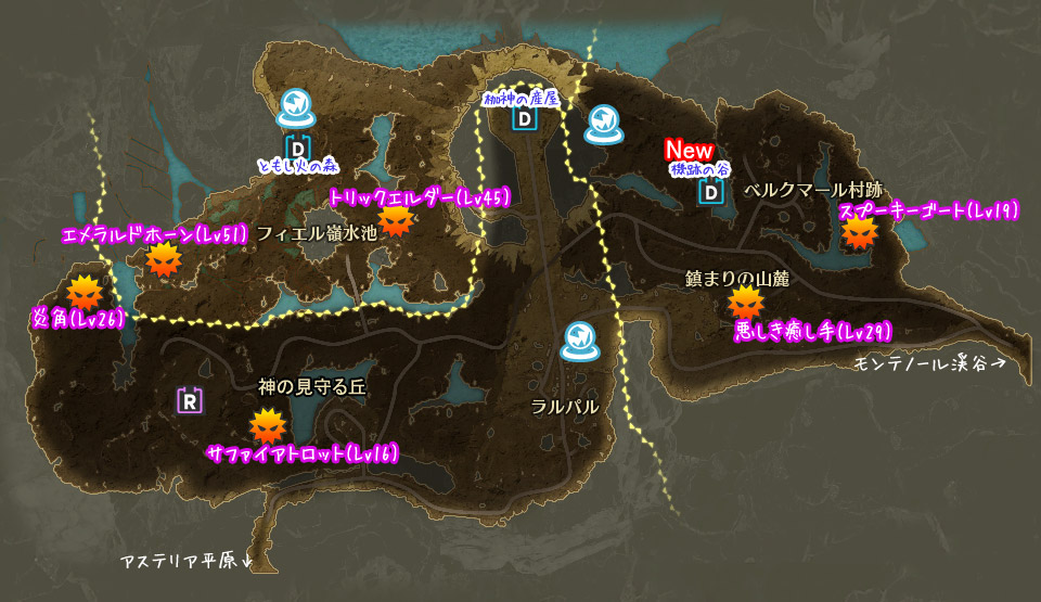 • 既にMAPに反映されてますが、亡国の工廠、フィエル嶺水池のオーギュラス遺跡の最奥(エメラルドホーンPOP地点付近)に入口。・・・ネーミング的にバーンハルト公国領内かと思ってたので意外。 -- 2023-12-20 (水) 20:04:26