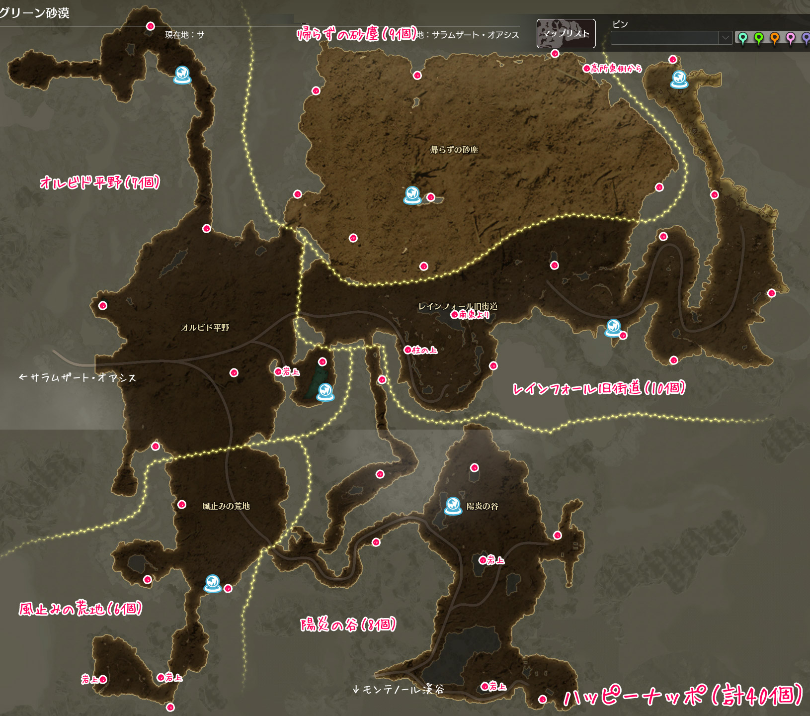 採取で入手できるアイテム。全フィールドでドロップするもの等を除く、高レベルなもののみ記載。 採取物は街に戻ると即時リポップする。