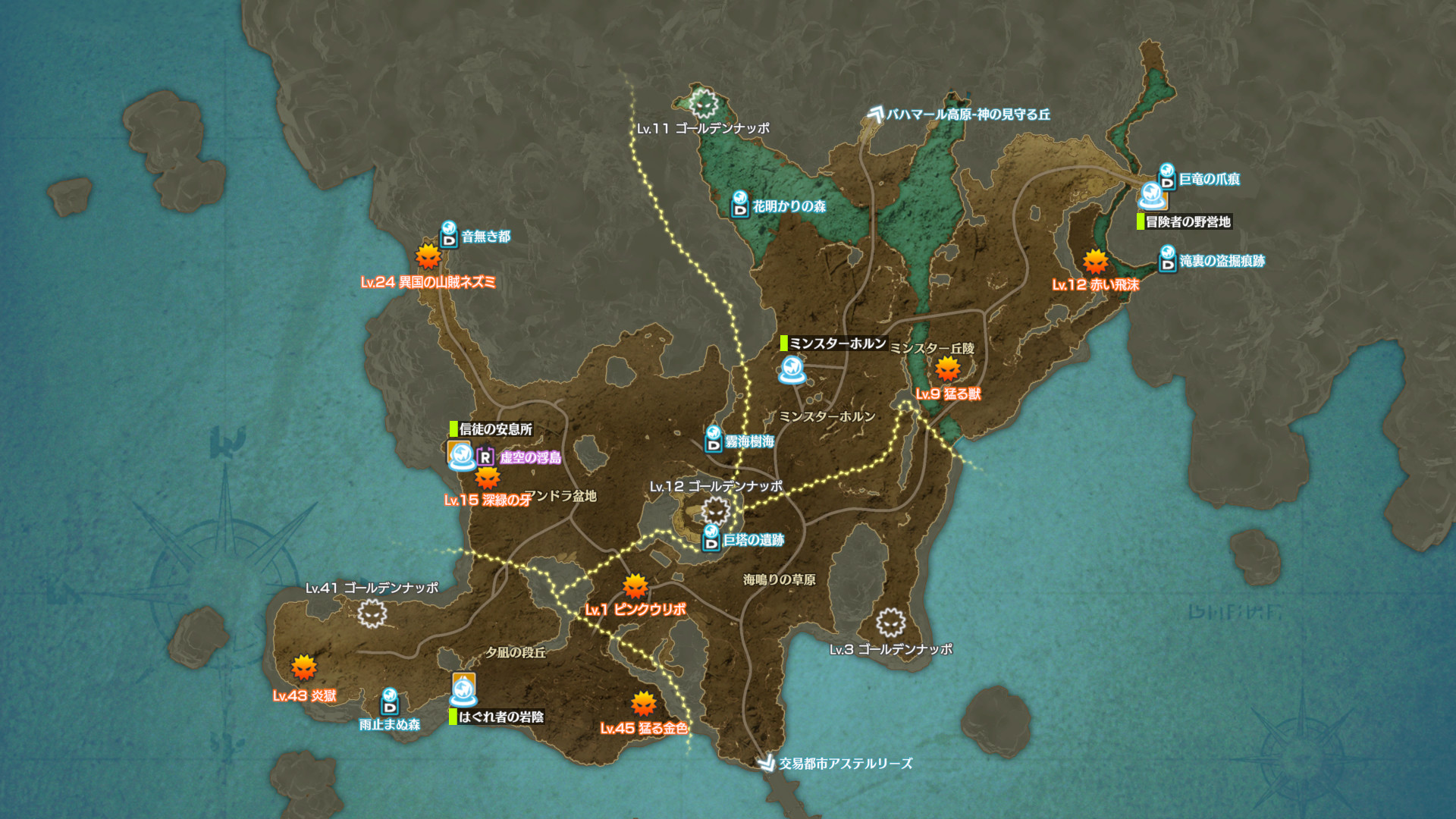 採取で入手できるアイテム。全フィールドでドロップするもの等を除く、高レベルなもののみ記載。 採取物は街に戻ると即時リポップする。