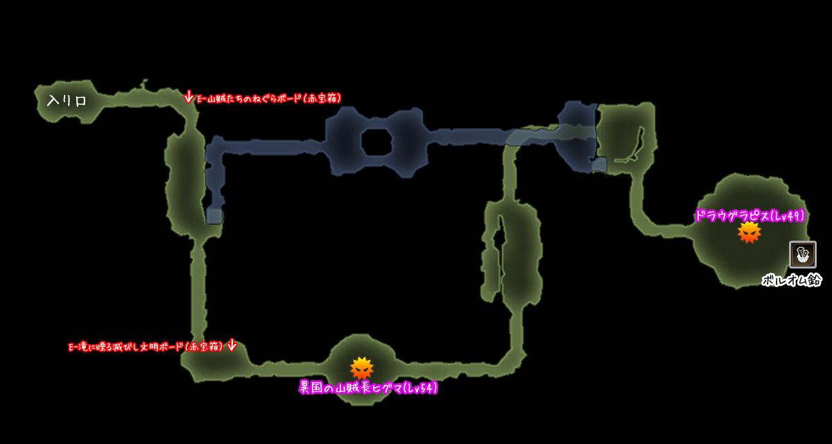 • マップ画像提供された方へ。異国の山賊長ヒグマは「Lv51」と確認しました。「Lv51」に表記を修正した上で画像の再提出をお願いします。完了と同時に、エネミー欄の修正も同時にお願いします -- 2023-07-06 (木) 09:13:17